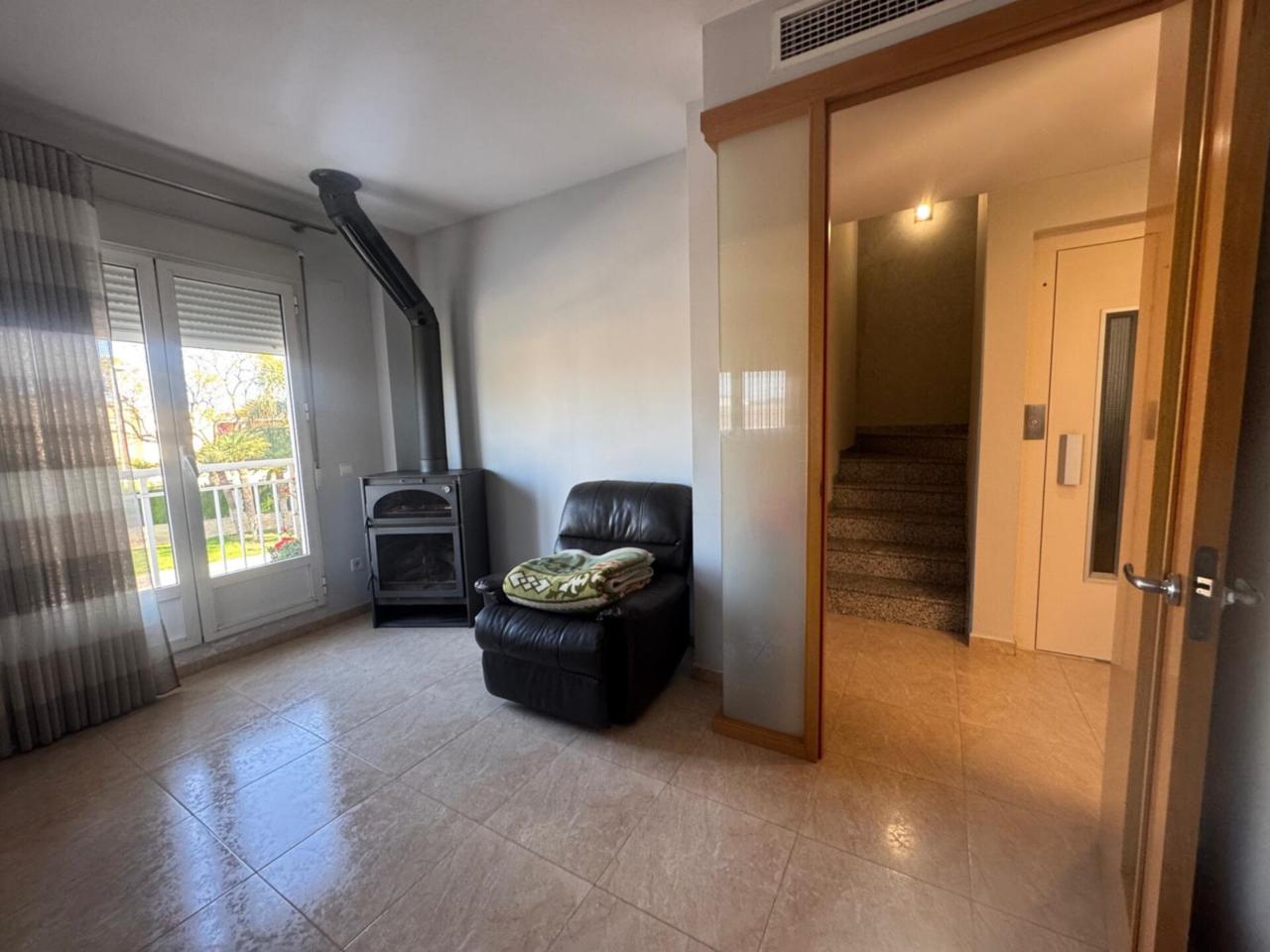 Descripción OPORTUNIDAD !! Se vende amplia casa adosada con ascensor todo exterior sito en Miramar a tan solo 3km de la playa , rodeado de todos los servicios , supermercados, centro médico, polideportivo, etc. Ideal para familias que buscan comodidad, espacio y accesibilidad. La vivienda destaca por su ascensor privado que comunica las tres plantas, su garaje para dos coches y un agradable patio exterior, a/acondicionado por conductos frio- calor . Distribución de la vivienda Planta baja Garaje con capacidad para 2 coches Patio privado de aproximadamente 15 m² Escalera interior con acabado de granito Acceso al ascensor Primera planta 1 habitación Luminoso salón-comedor con chimenea, dos ventanas y pequeño balcón Cocina independiente 1 baño con ducha Acceso al ascensor 2 planta 3 habitaciones Dormitorio principal con baño suite